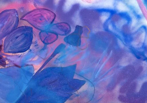 Bubblegum and Wine (2016) has a complexity and an approach that is quite like Jazz. There are passages and rhythms that are free-formed, yet connected within a common intent. There is a conversation going on between elements that is quietly conducted by a spiritual guide to the left (a white vertical haze), while factions of blues, greens, pinks and yellow coalesce to keep it both hot and cool.