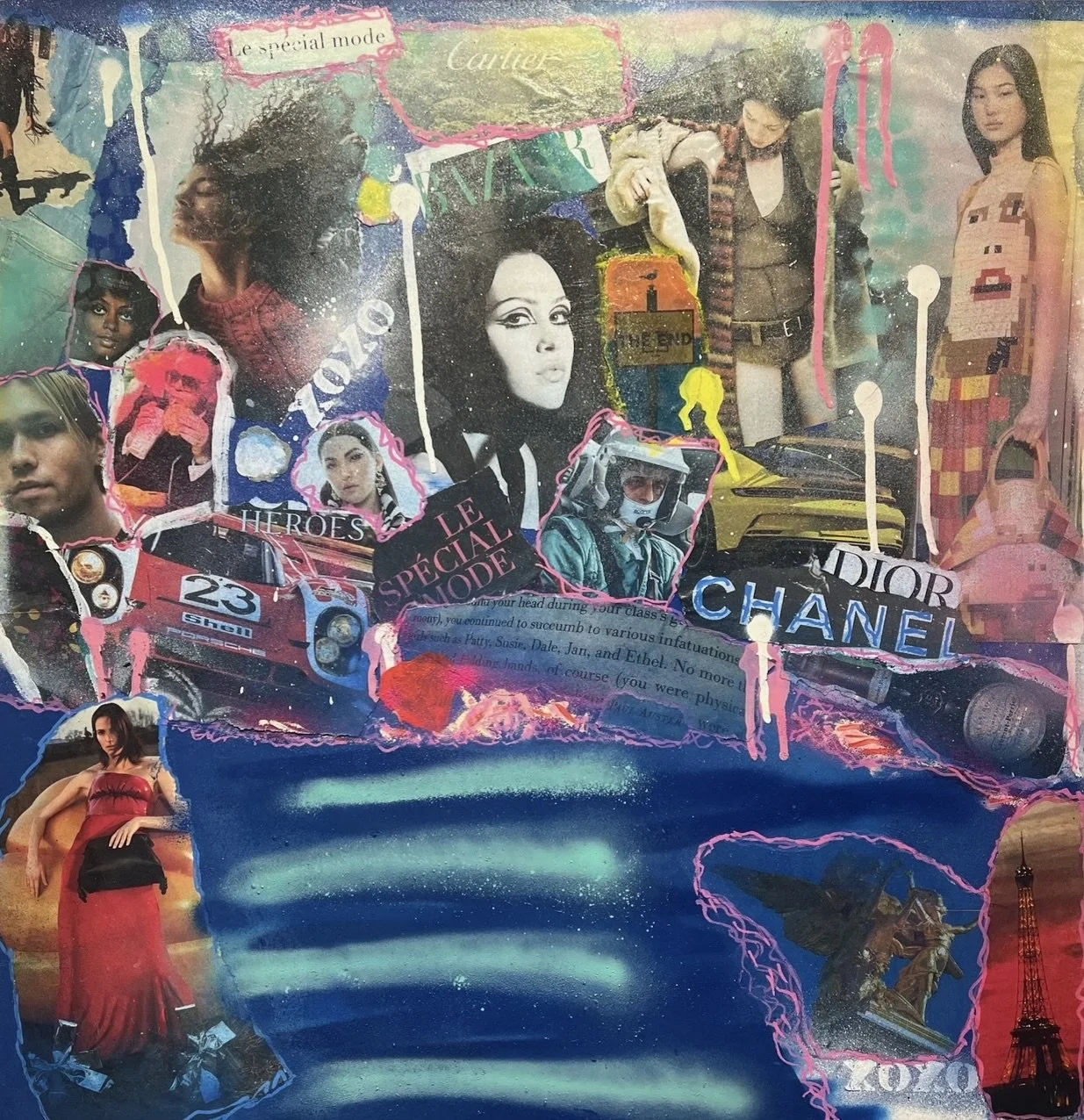 Paris & Life. 24 x 24”. Mixed media on wood panel with resin coating. 2024. SOLD.